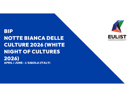 The University of L’Aquila, in cooperation with Leibniz Universität Hannover (LUH), Universidad Rey Juan Carlos (URJC) and Jönköping University (JU), is organizing a EULiST BIP called Notte bianca delle culture 2026″ (White night of cultures 2026), in the framework of the “L’AQUILA, ITALIAN CAPITAL OF CULTURE 2026” event.