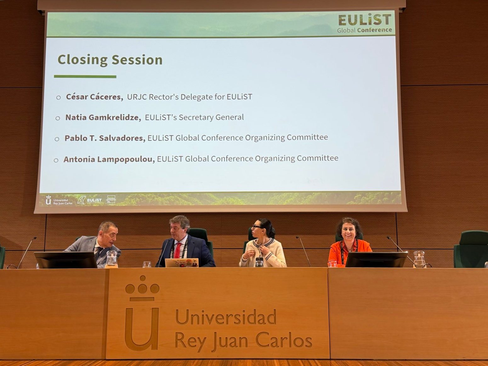 The closing ceremony of this exceptional event took place on 21 November and was led by César Cáceres, URJC Rector’s delegate for EULiST; Natia Gamkrelidze, EULiST Secretary General; and Pablo T. Salvadores and Antonia Lampopoulou, heads of the Global Conference Organising Committee.