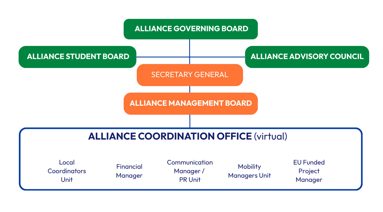 - Alliance Coordination Office (Virtual): Executes daily operations and ensures internal coordination. It consists of specialized units: